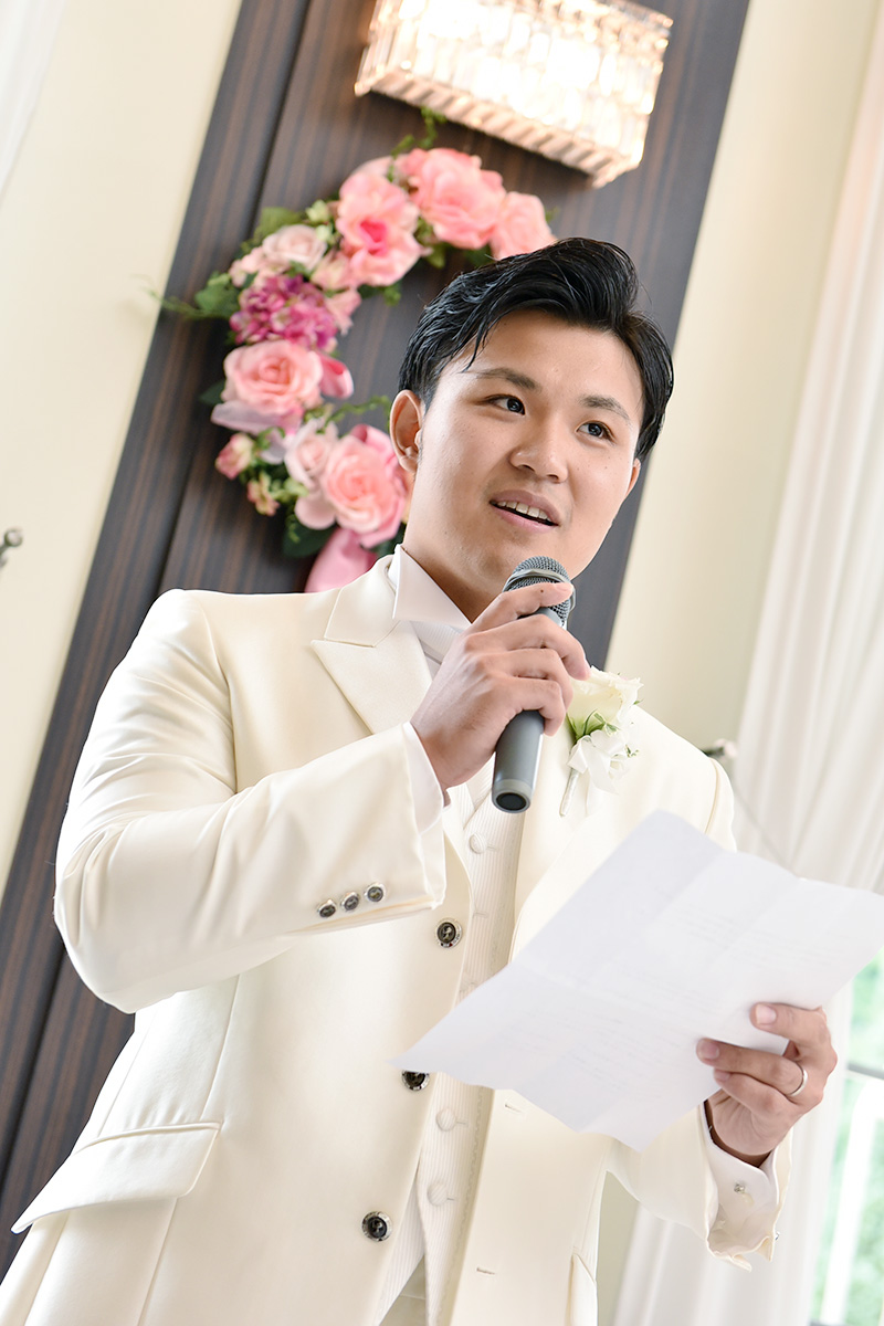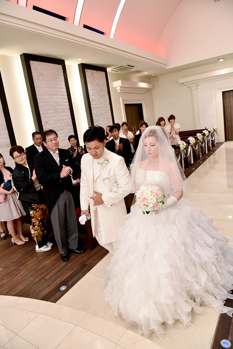 お二人の緊張した表情や会場の雰囲気、おふたりを祝福するゲストやご家族の笑顔もいっしょに撮影します。